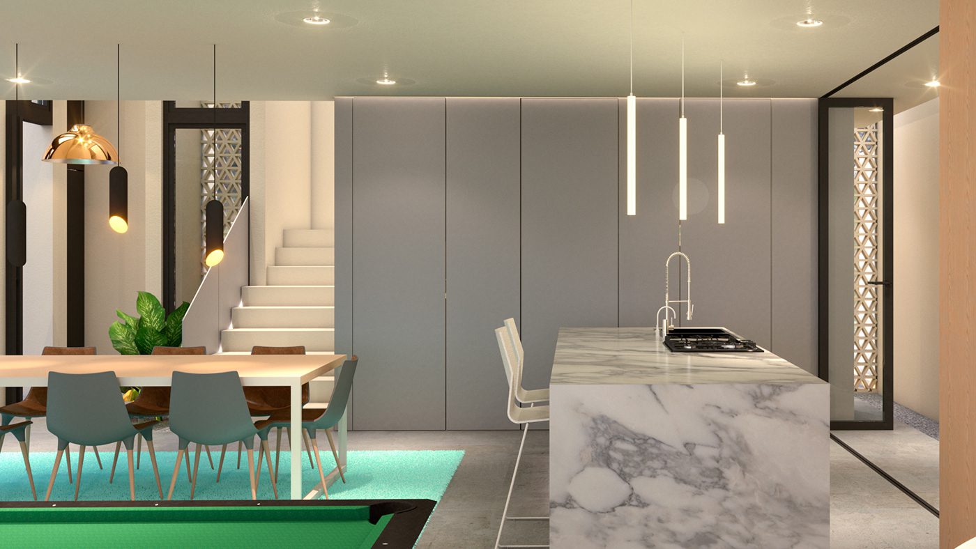 Con un enfoque en el diseño estratégico de volúmenes, la casa no solo se destaca visualmente, sino que se adapta de manera perfecta al entorno natural.