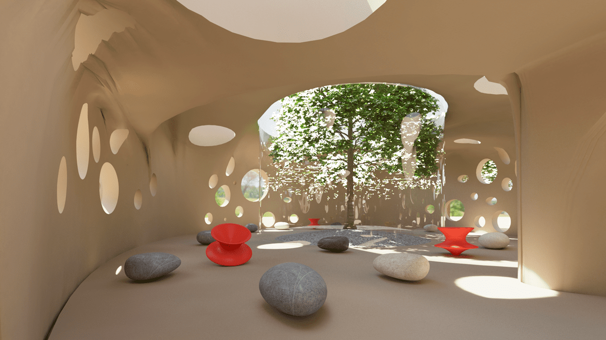 Diseño conceptual de casa con forma escultórica que aprovecha las vistas a las montañas.